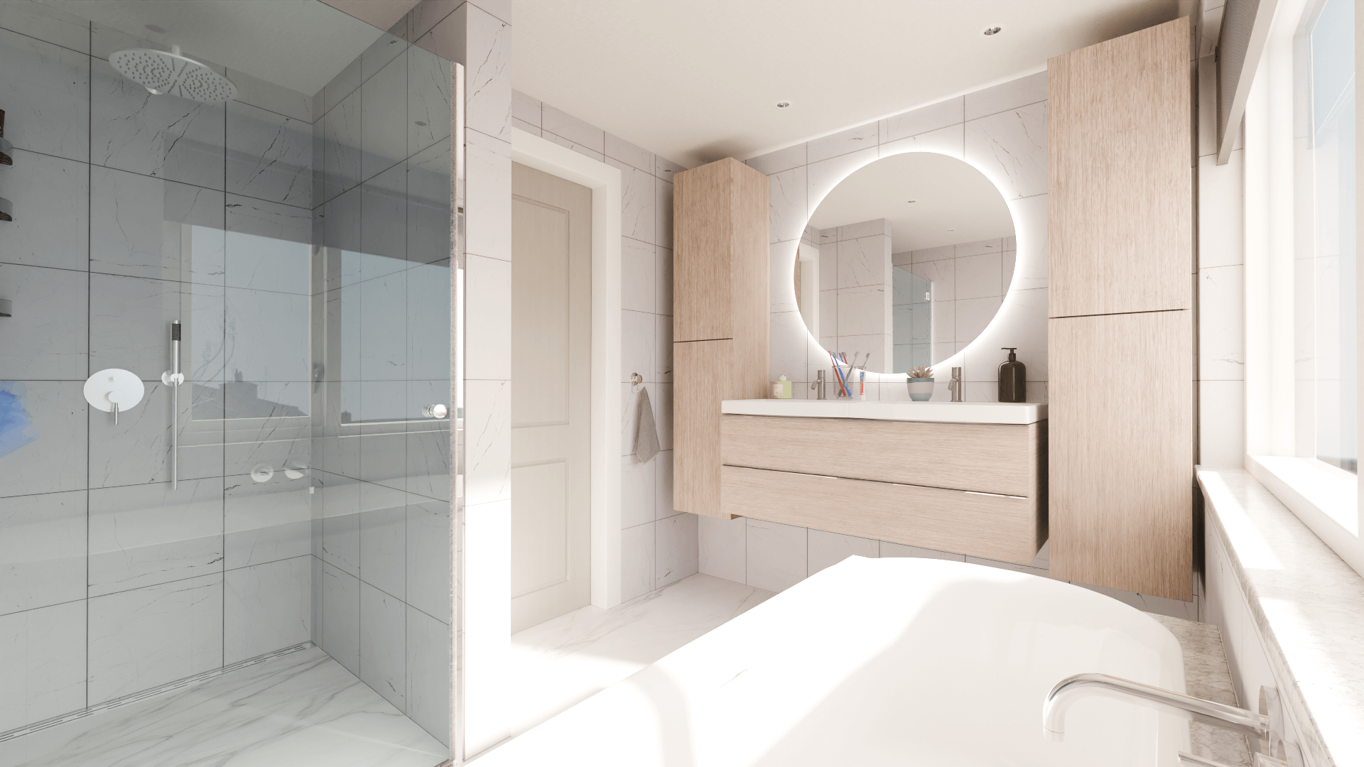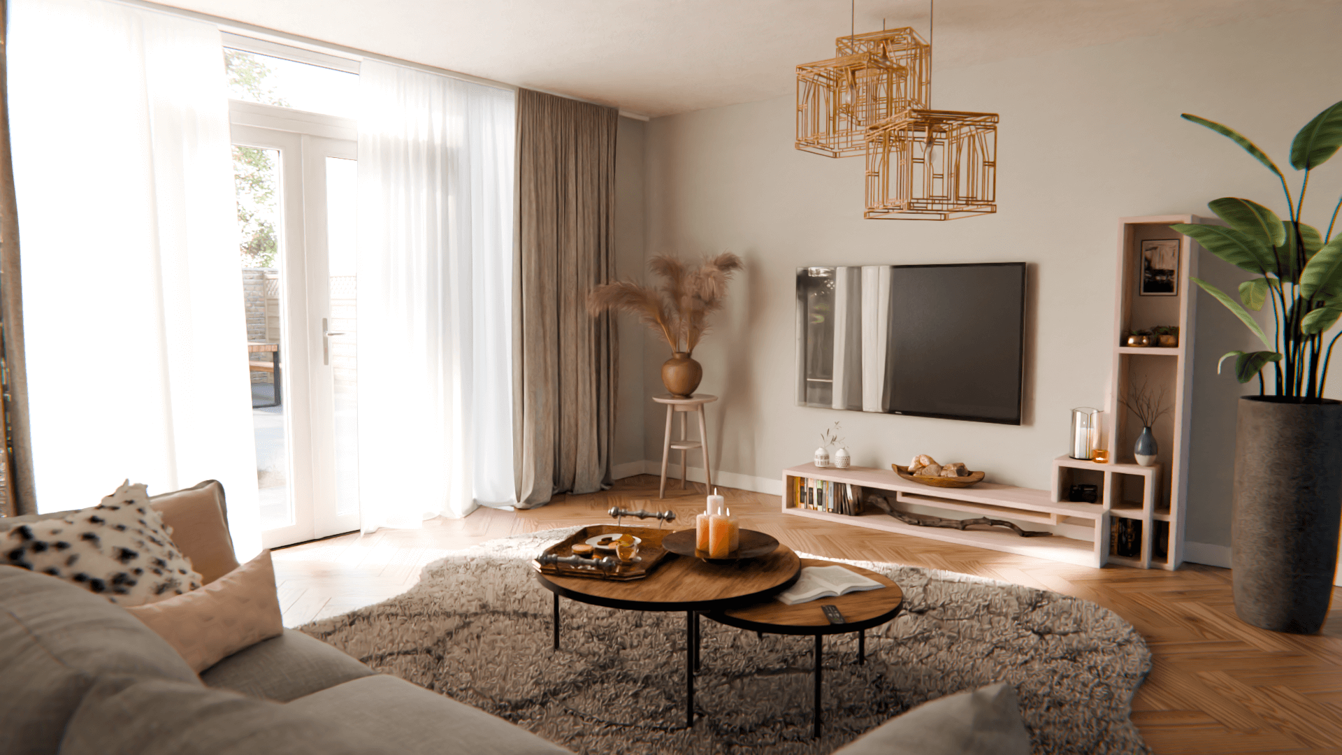 Eerst wordt het product 3D gemodelleerd. Aan dit model worden materialen toegevoegd, zoals hout, metaal en plastic.
